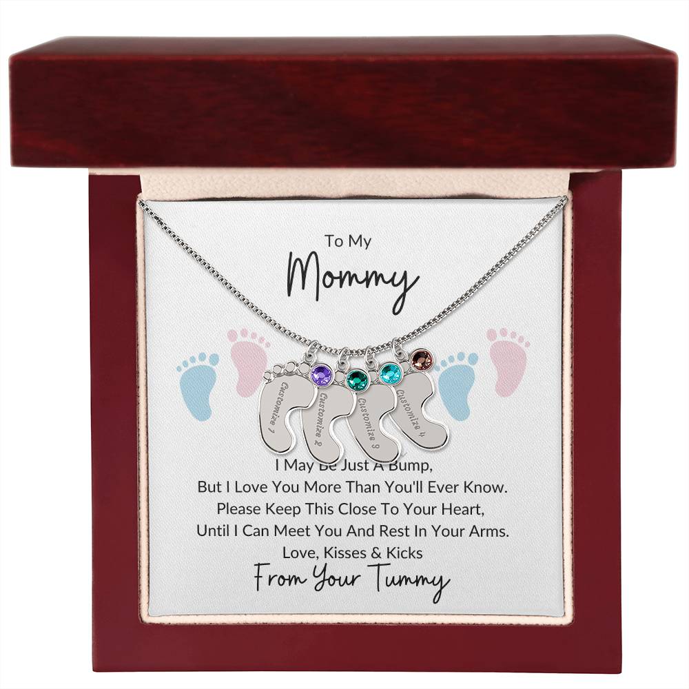 Celebrate the arrival of a newborn or cherish a precious memory with our Custom Baby Feet Necklace with Birthstone. Personalize your gift by engraving a name of your choice onto the pendant and choosing a crystal that correlates with the baby's birth month. And by picking multiple pendants, a custom present like this is perfect for moms and grandmothers with big families. This is a one-of-a-kind keepsake that will be treasured for a lifetime!